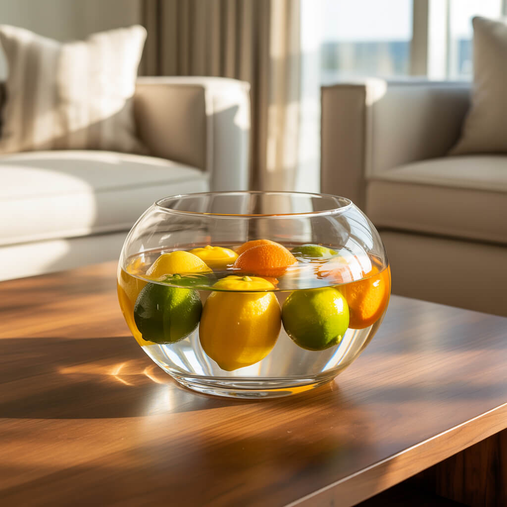 Take a clear glass vase or bowl and fill it with lemons, limes, and oranges. Top it off with water so the fruit appears to float. It’s edible decor that screams sunny, fresh energy.