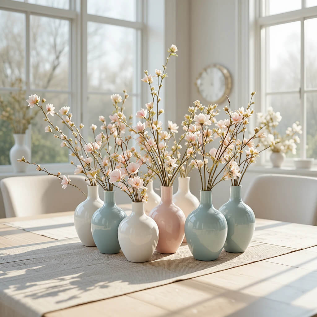 Instead of one large vase, gather a collection of small, mismatched bud vases. Put a single stem—a tulip, a sprig of cherry blossoms, a wild daisy—in each.