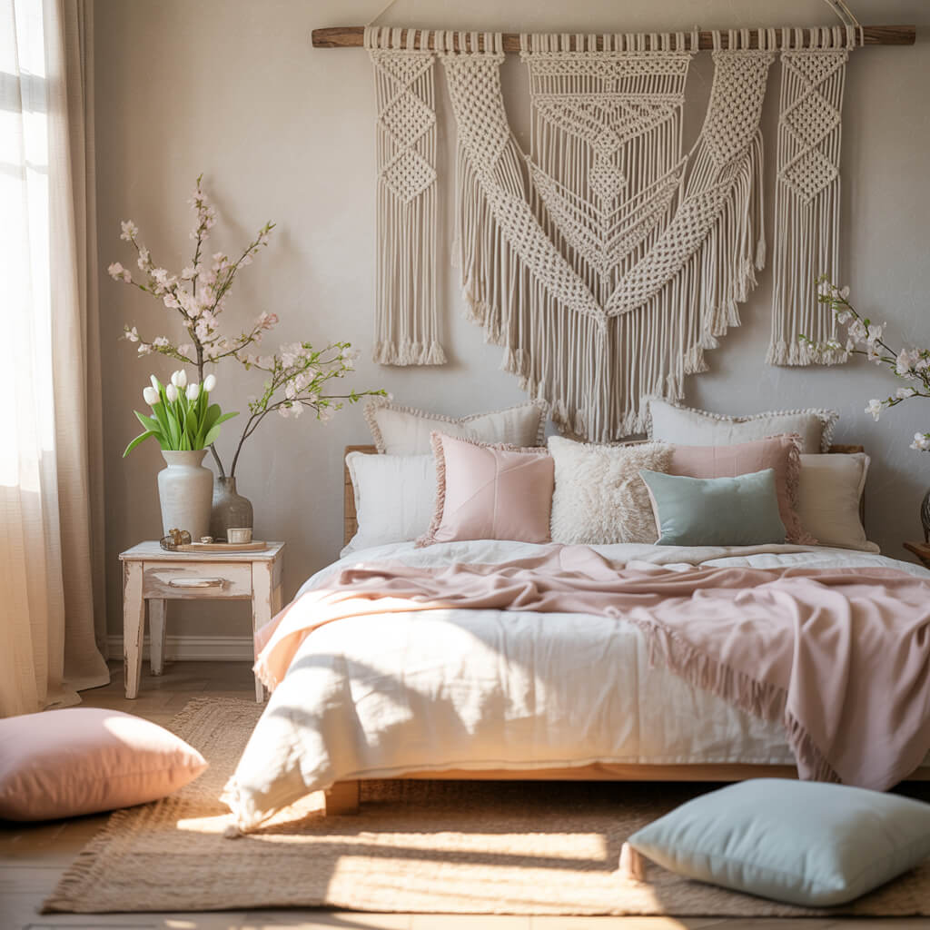 Bring in beautiful texture with a boho-chic wall piece. It adds softness and artisanal warmth without feeling heavy.