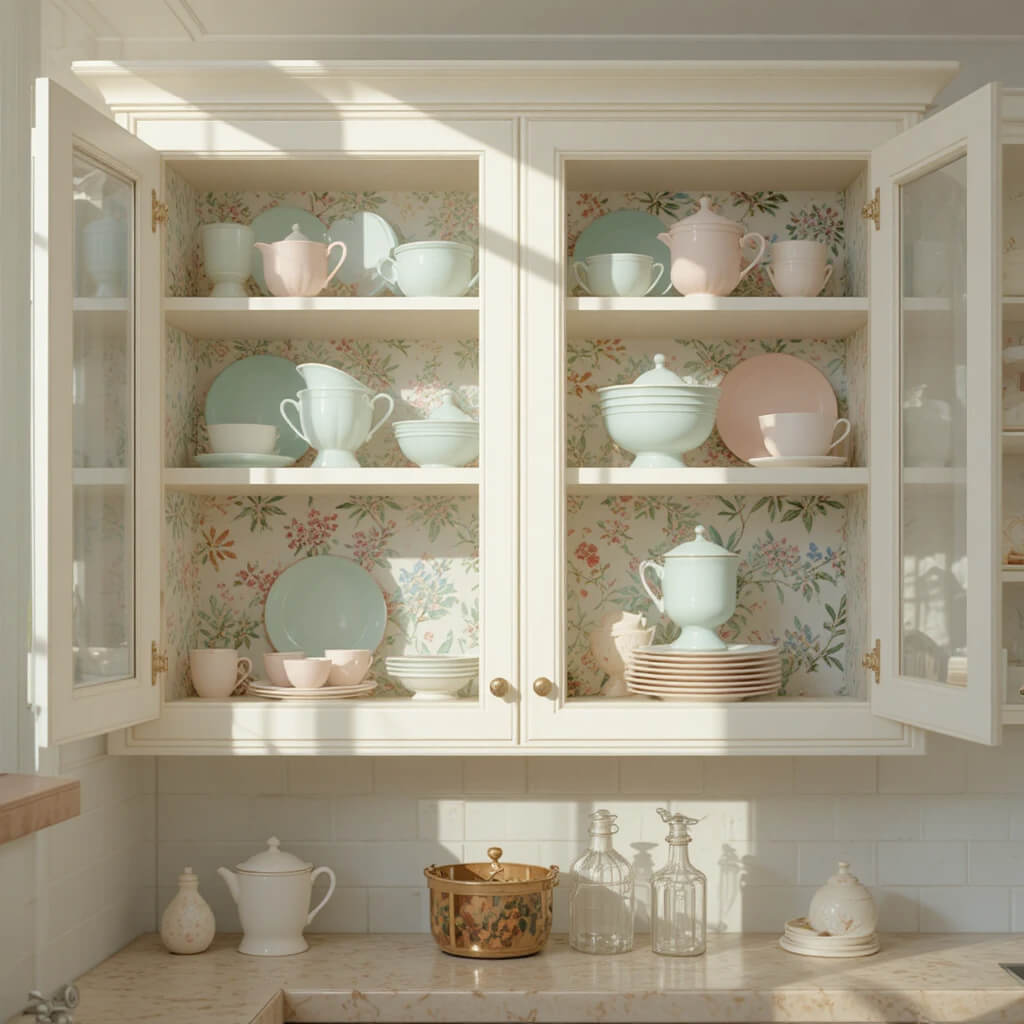 This is the secret weapon you’re ignoring. Peel off those dark, moody winter liners and pop in a fresh, patterned paper or a crisp linen look. It instantly brightens the whole shelf.