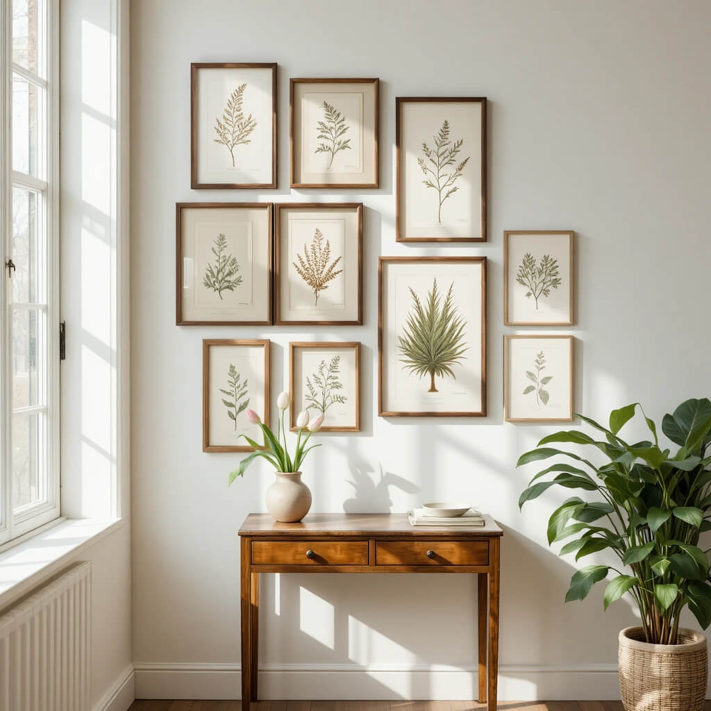 Forget basic prints. Grab a bunch of vintage field guide pages or plant-themed book plates and create a curated gallery wall. It’s like a nerdy, beautiful ode to spring growth. Mix in some pressed ferns in frames for texture.