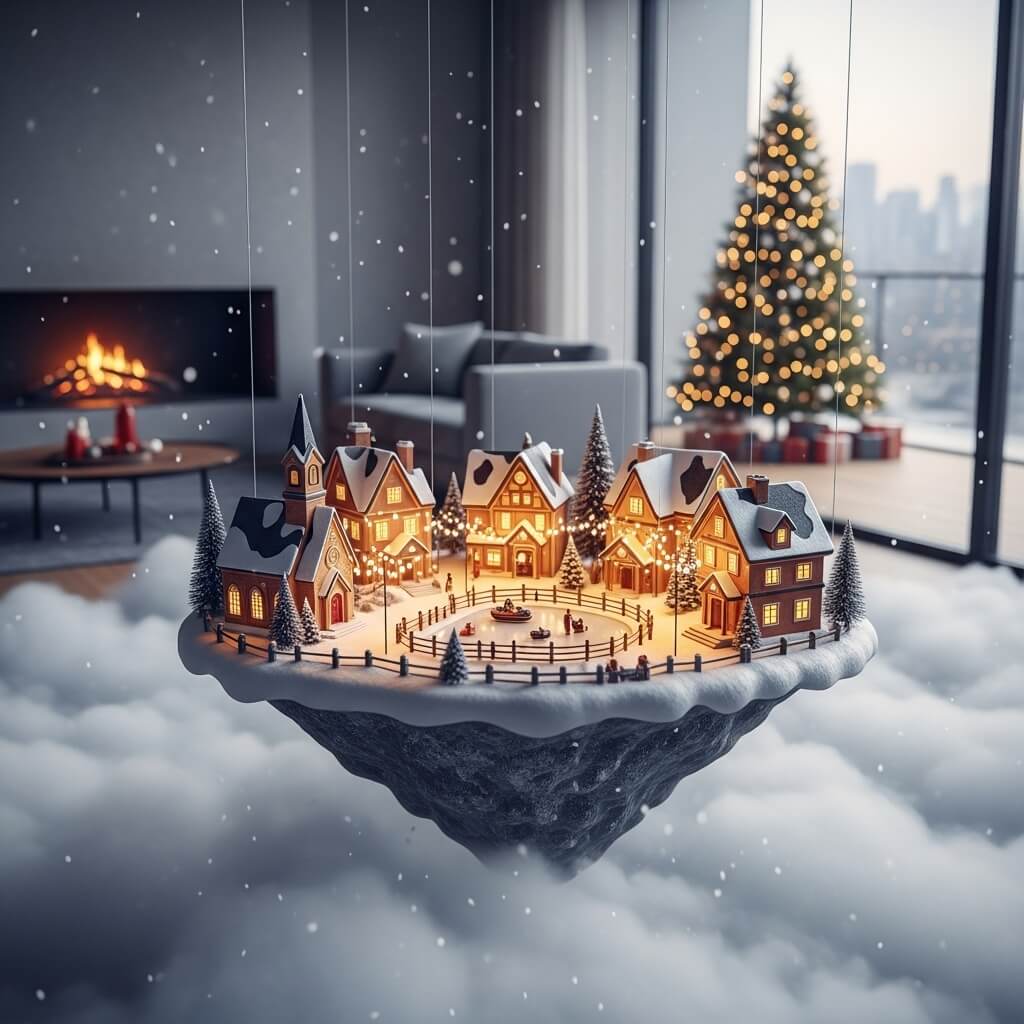 Ever wondered how to make your village look like it’s straight out of a dream? Suspend a circular piece of wood or a large, sturdy wreath form from the ceiling with clear fishing line. Build your village on this “floating island,” adding plenty of fluffy batting for clouds. It’s a pure fantasy setup that will stop everyone in their tracks.