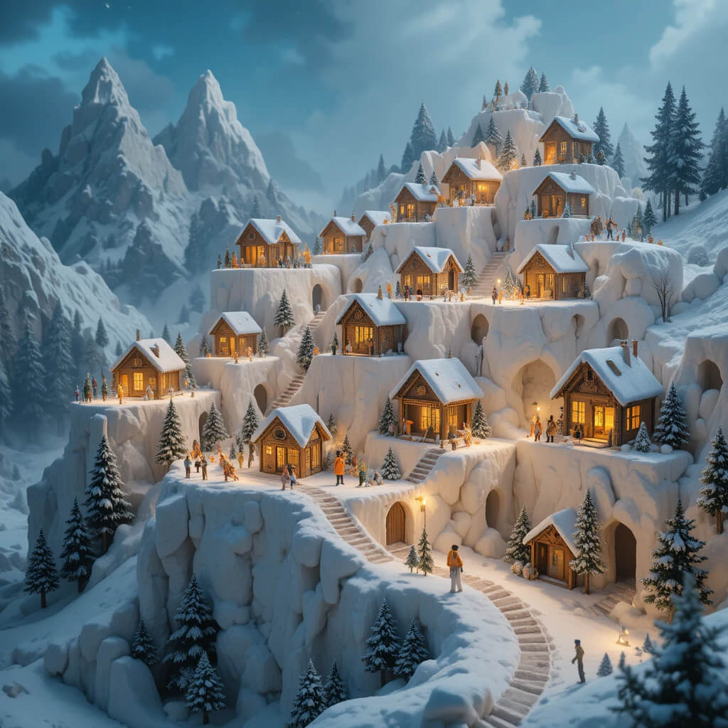 Don’t just spread your village out; build it up! Using sturdy boxes or styrofoam blocks wrapped in a simple white blanket, you can create a gorgeous, snow-covered mountain. Stagger your houses at different heights to mimic a real alpine village. It adds so much drama and uses your vertical space brilliantly.