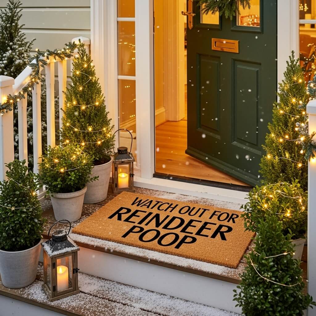 It’s the lowest-effort, highest-impact item on this list. From a simple “Merry & Bright” to a sarcastic “Watch out for the Reindeer Poop,” it sets the tone immediately.