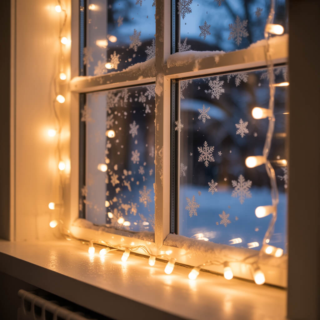 Why should the outdoors have all the fun with lights? Frame the inside of your windows with warm white string lights or LED candles.