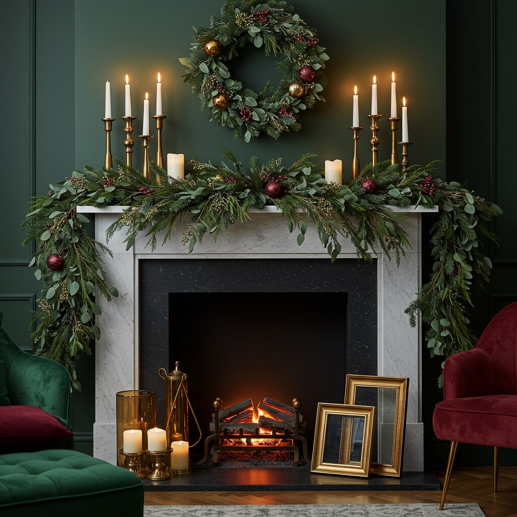Start with a base of mixed garlands—eucalyptus, pine, and maybe a berry strand. Then, add different heights with candlesticks, a leaning picture frame, and small stacks of books. Finally, tuck in a few special ornaments for sparkle.