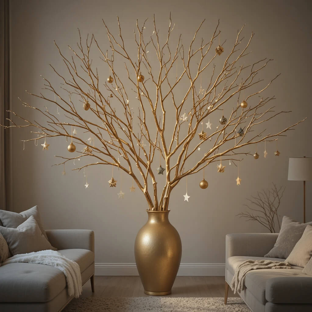 Not a tree person? No problem. Create a stunning, modern silhouette with a large, bare branch spray-painted gold or white. Hang delicate ornaments, paper stars, or origami cranes from it.