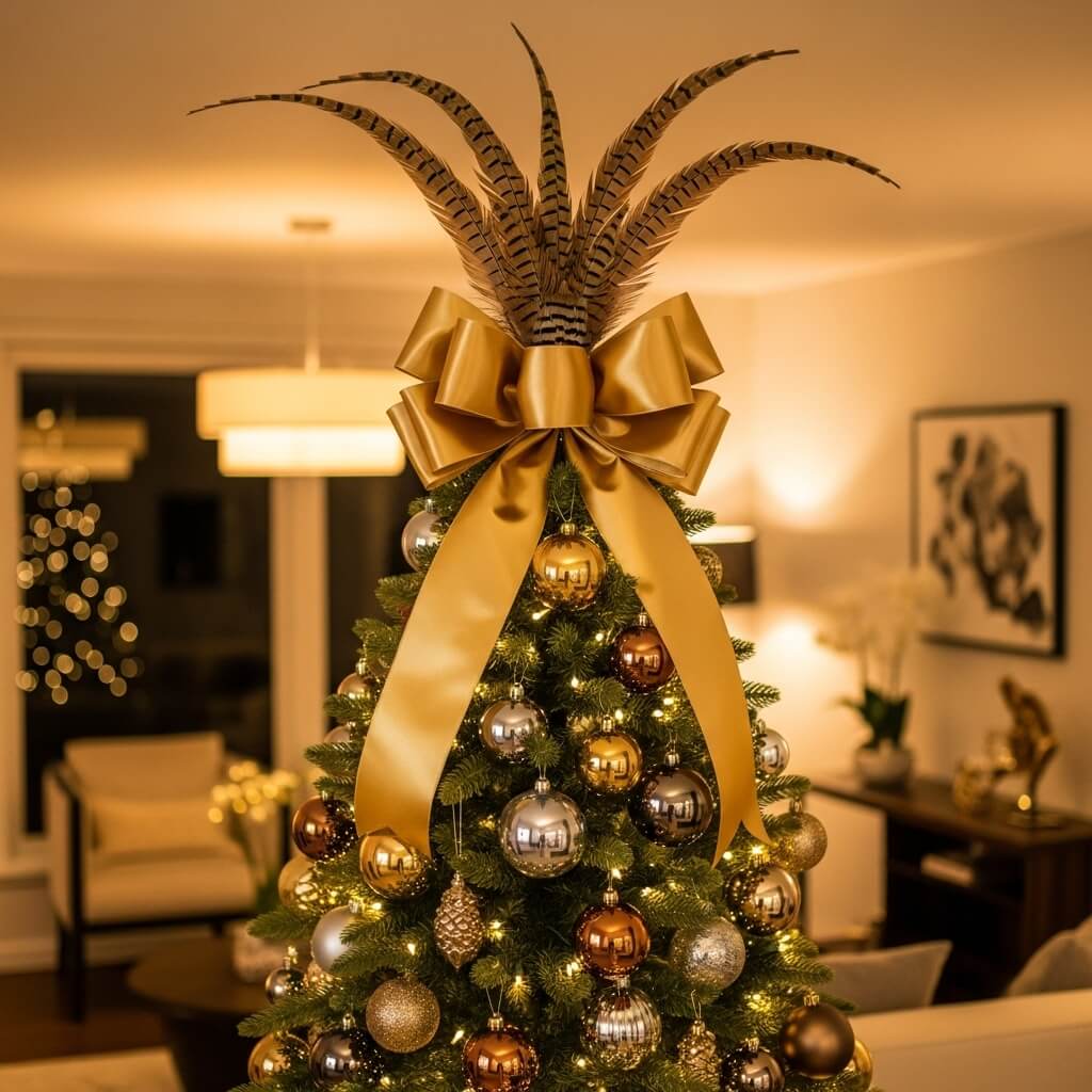 Move over, standard star. Why not crown your tree with an oversized, decorative bow made from luxe ribbon? Or a gathering of pheasant feathers? This is your chance to really personalize your Christmas Living Room Decor and make your tree uniquely yours.