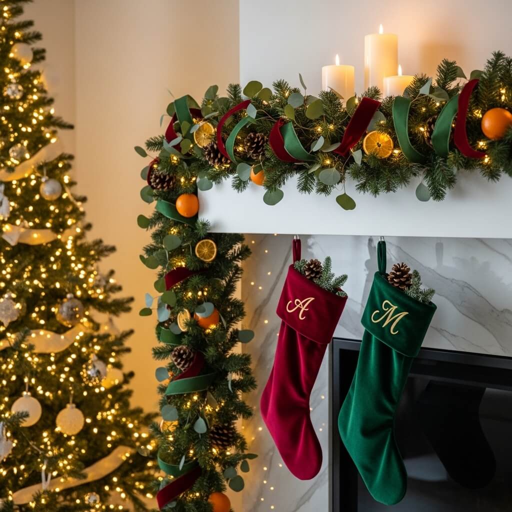 Ditch the basic garland. I’m talking about a lush, pre-lit one draped across your mantel with intention. Weave in some ribbon, pinecones, and even a few dried oranges for a custom look. This becomes the focal point of your entire Christmas Living Room Decor.