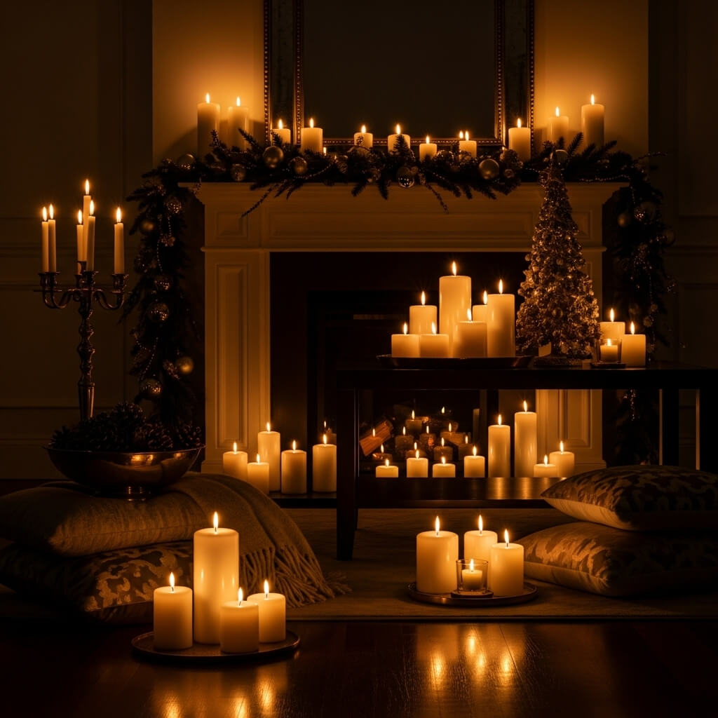 I’m not just talking about a few pillars on the table. Cluster groupings of varying-height candlesticks on your mantel, side tables, and even the floor. Use real candles for the flicker, or go with flameless LEDs for peace of mind. The ambient light is pure holiday magic.