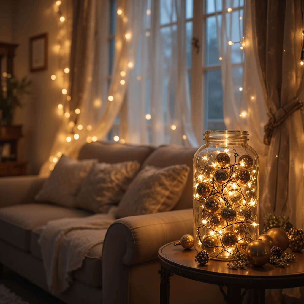 Weave a string of warm-white fairy lights in a glass jar, drape them inside a lantern, or tuck them behind your drapes. This isn’t about bright lighting; it’s about creating a soft, twinkling ambiance that makes any evening feel like Christmas Eve.