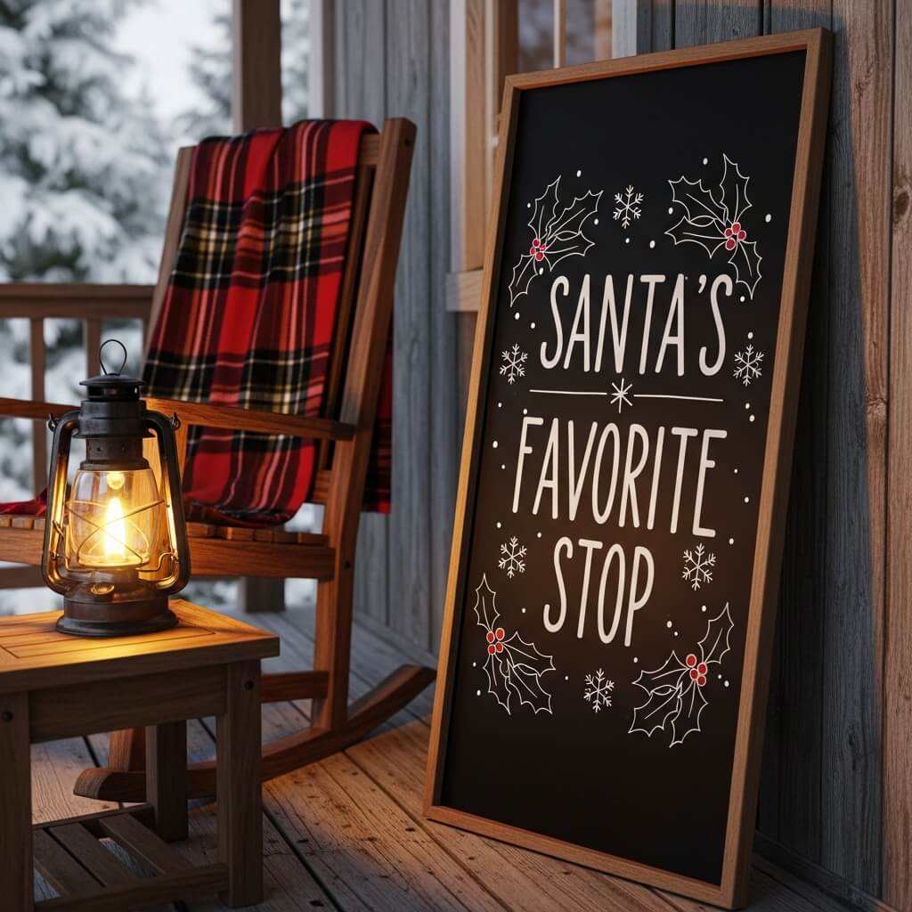 A rustic wooden chalkboard with a beautifully written holiday message is the epitome of charm. Welcome guests with a “Merry Christmas, Y’all!” or “Santa’s Favorite Stop.”