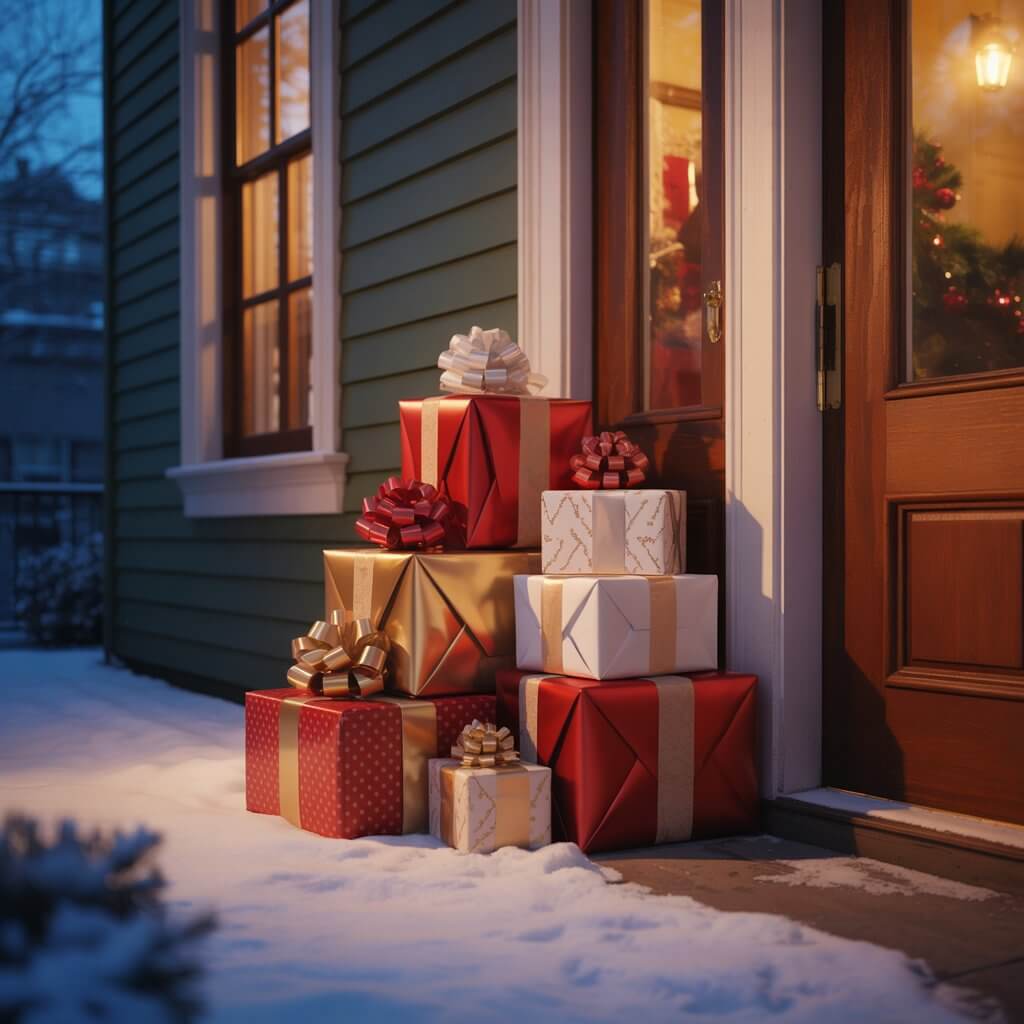 Wrap a few empty boxes in your chosen Christmas wrapping paper and stack them like gifts by your door or on a porch bench. It’s a simple trick that adds a fun, festive layer.