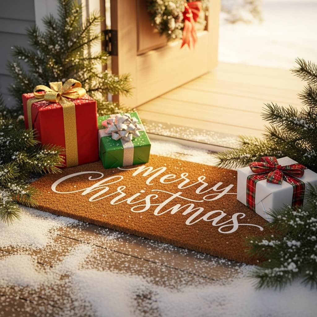 This is the lowest-lift, highest-impact move you can make. A new doormat welcomes guests with a funny saying, a classic “Merry Christmas,” or a beautiful pattern. It’s the foundation of your Christmas Porch Decor.