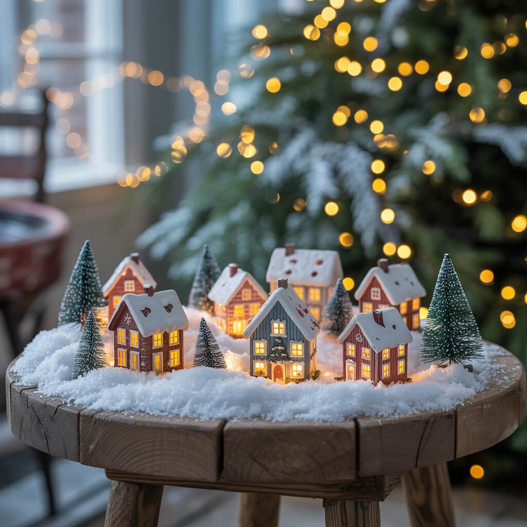 Who says the Christmas village has to be indoors? Set up a small, weather-resistant village on a porch table or a sheltered corner. Use little battery-operated tea lights inside the houses for a magical glow.