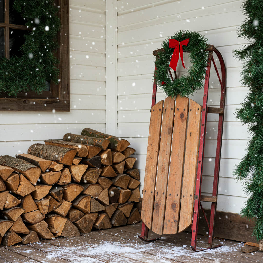 Lean a vintage-looking wooden sled against your house wall. It’s a nod to nostalgic winters and adds a fantastic rustic texture. It’s also a great way to fill a vertical space without any fuss.