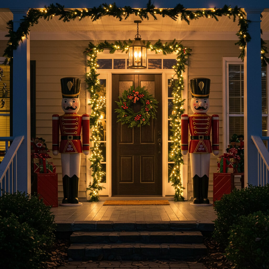Place a pair of classic wooden toy soldiers on either side of your door. It’s a touch of nostalgic whimsy that feels both festive and formal, like your own personal Nutcracker suite.