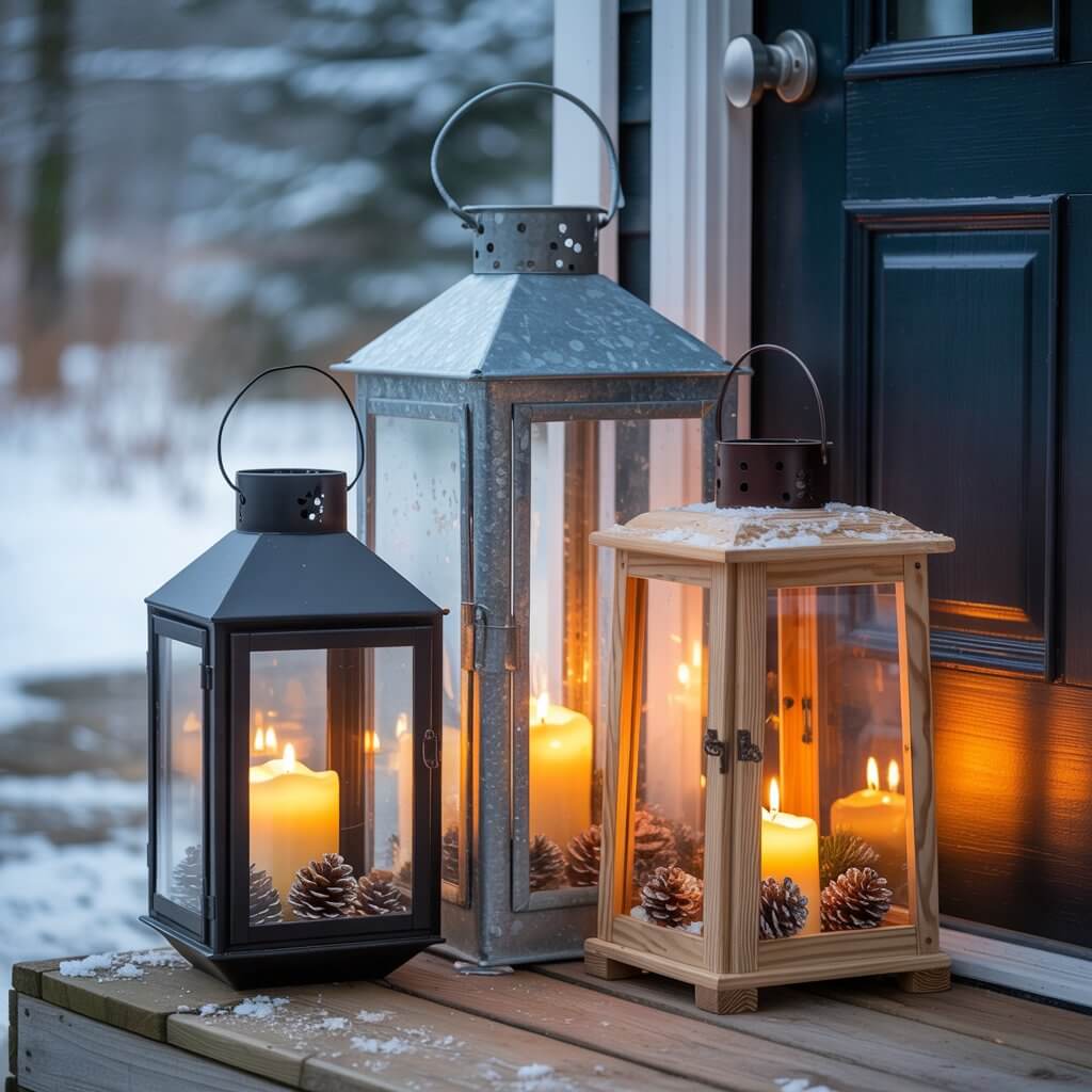 Grouping three lanterns of varying heights by your door is a simple, yet incredibly effective, trick. Fill them with battery-operated candles, pinecones, or ornaments for a warm, flickering glow.