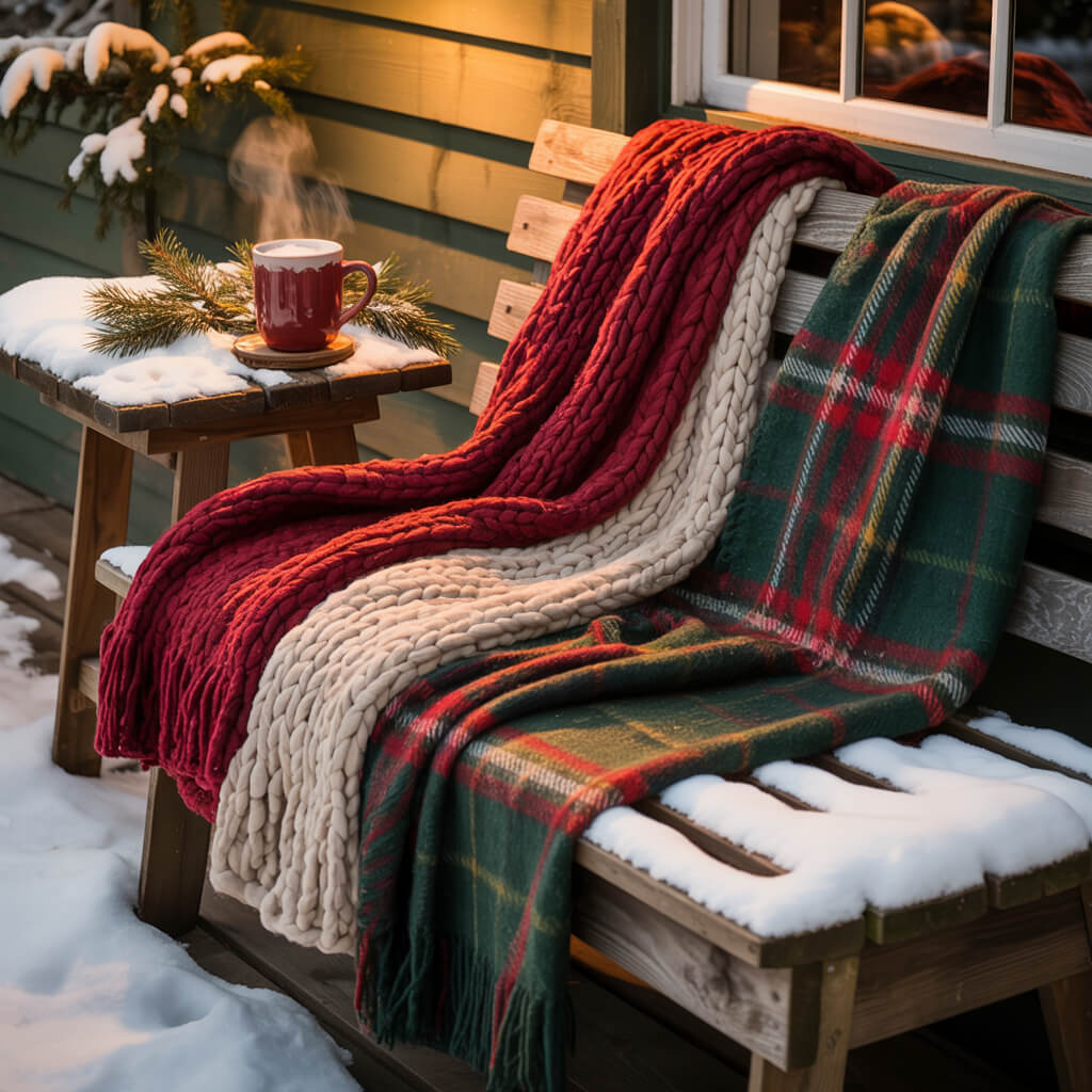 • Choose blankets in classic holiday colors like crimson, forest green, or creamy white.