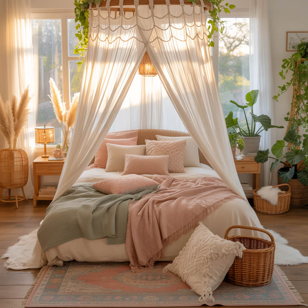 This trend screams romantic, laid-back Spring Boho Decor. It instantly turns your bed into a dreamy, cozy nest.