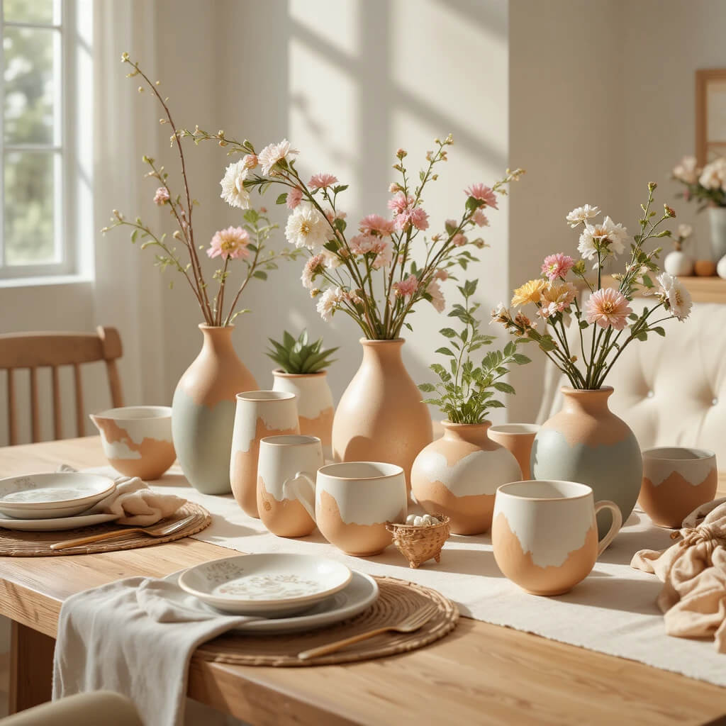Say no to perfect, uniform sets. We’re collecting mugs, vases, and planters with wonky shapes, hand-painted details, and artisanal glaze variations.