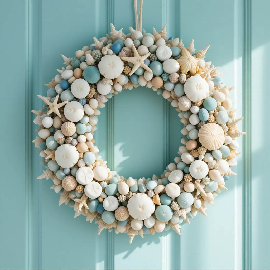 Who says Christmas wreaths have to be all about snow and pine trees? If you live by the water or just adore a beachy vibe, this design brings the holidays to the coast. It’s light, airy, and totally refreshing.