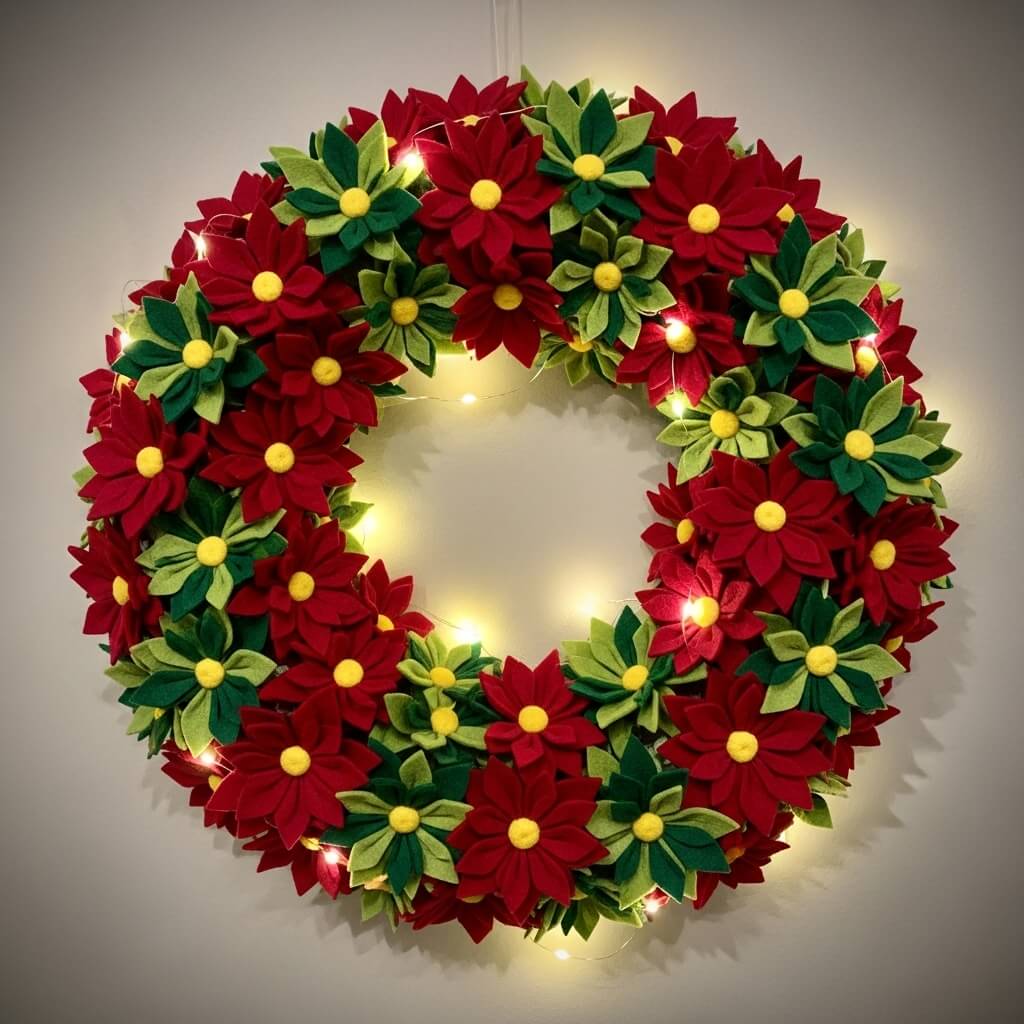 Felt is a crafter’s best friend. It’s cheap, doesn’t fray, and comes in every color imaginable. This project involves creating lush, dimensional poinsettia flowers from red and green felt to create a cozy, handmade masterpiece for your Christmas decor.