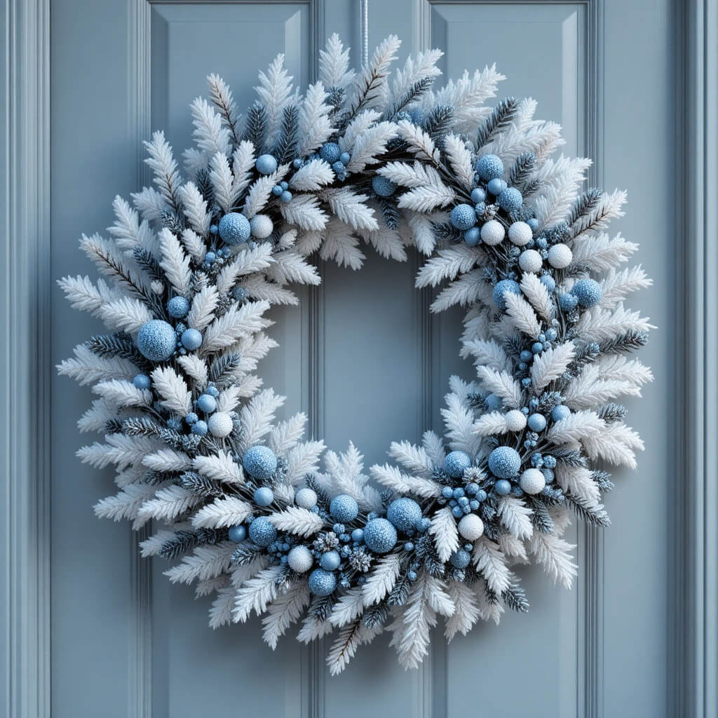 Imagine a quiet, frosty morning captured in a wreath. That’s this one. It features frosted pinecones, silvery-white berries, and greenery dusted with a delicate “snow.” It’s elegant, cool, and utterly breathtaking.