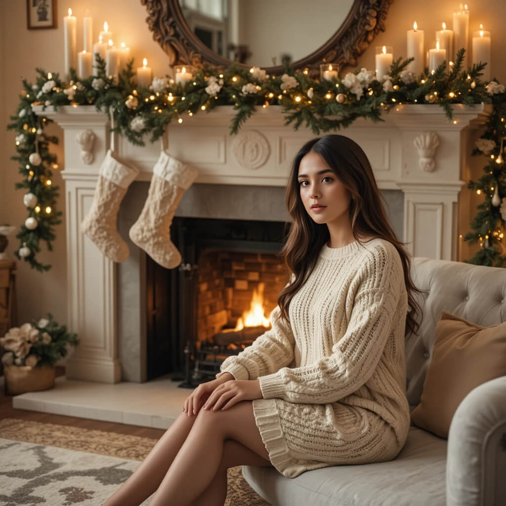 Want to look festive but still comfy enough for lounging? Try a cable-knit sweater dress in cream or deep red. It’s classy, effortless, and warm — like a fashion hug.