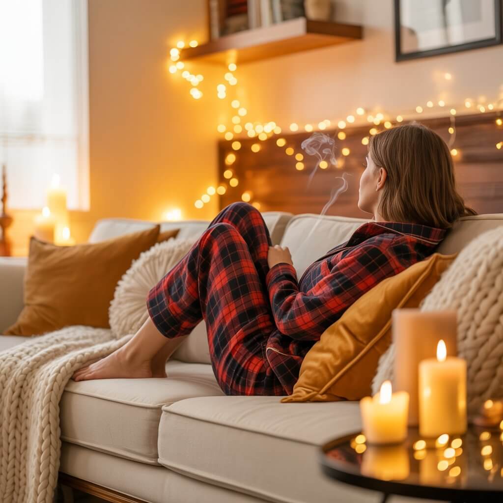 IMO: There’s something weirdly satisfying about sipping hot tea in an oversized hoodie while your space smells like pine and cinnamon. Comfort goals, right?