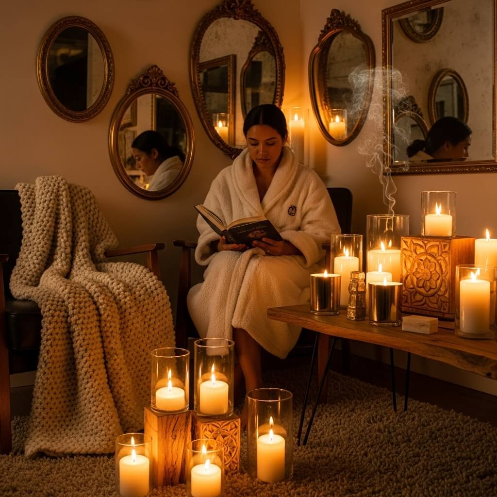 Want to up the aesthetic? Place candles near mirrors. The reflection doubles the glow (and makes your robe look extra luxurious, trust me).