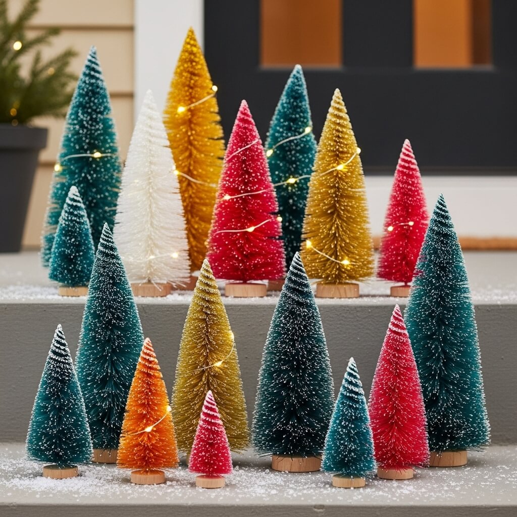 Channel your inner mid-century modernista with a cute collection of bottle brush trees. Get them in various heights, and arrange them on your porch steps or a console table by the door. For extra sparkle, look for ones that are pre-lit or lightly dusted with glitter.