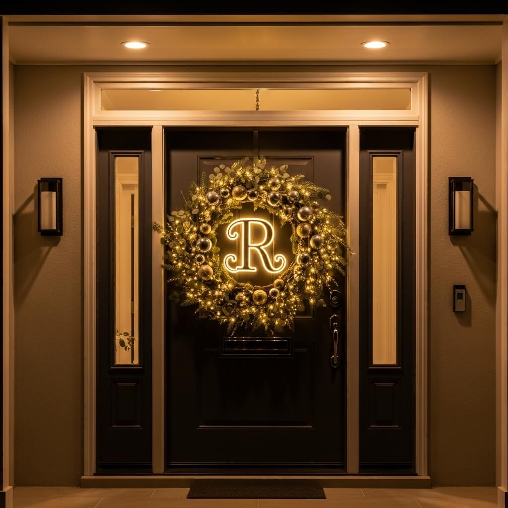 - It’s a fantastic way to repurpose a simple wreath you already own by attaching a light-up letter.