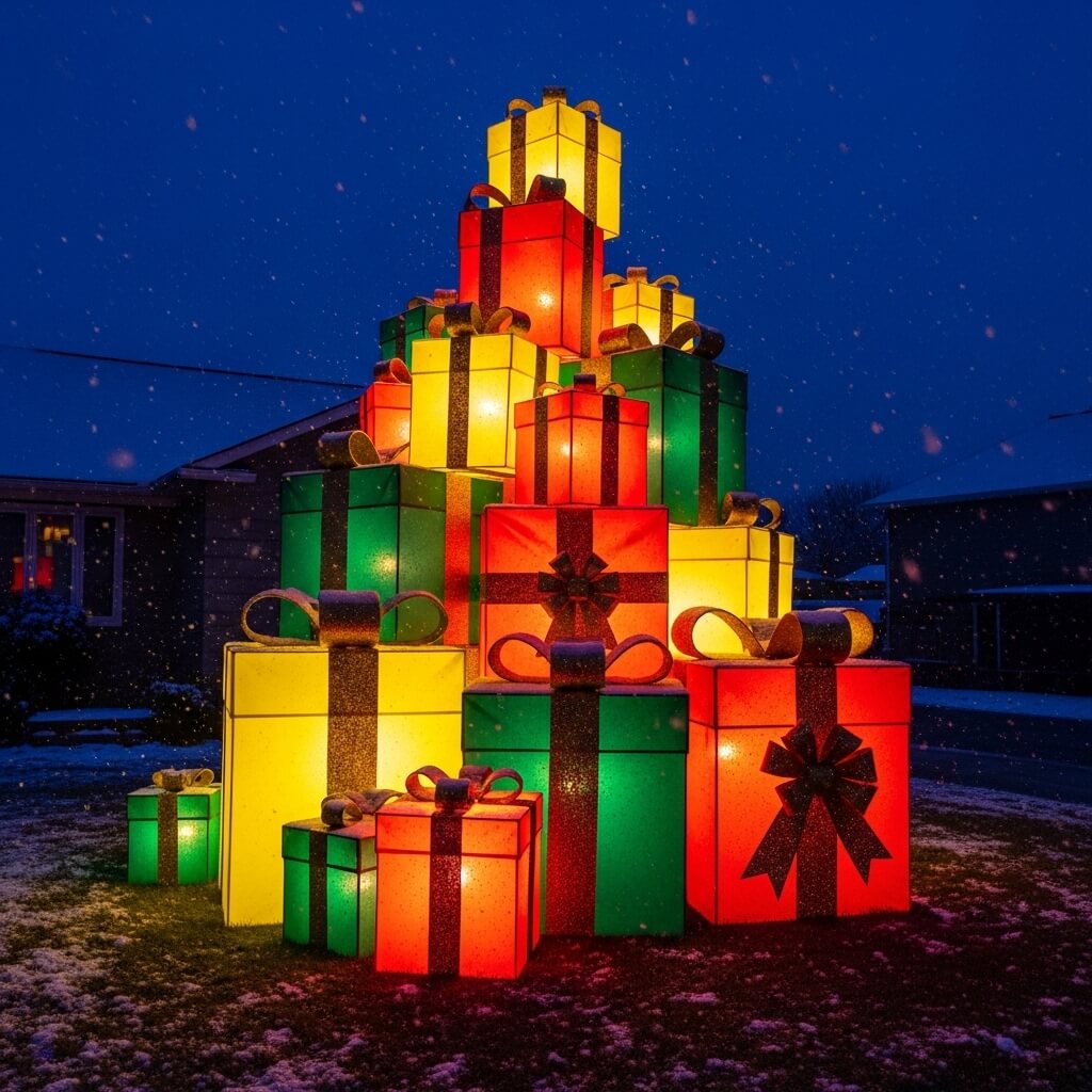 This one is so simple, it’s genius. Create a stack of giant, lighted presents on your lawn or porch. You can buy pre-made kits or DIY your own with sturdy cardboard boxes, wrapping paper, and weatherproof rope lights. It’s a 3D, interactive-looking display that’s just pure joy.