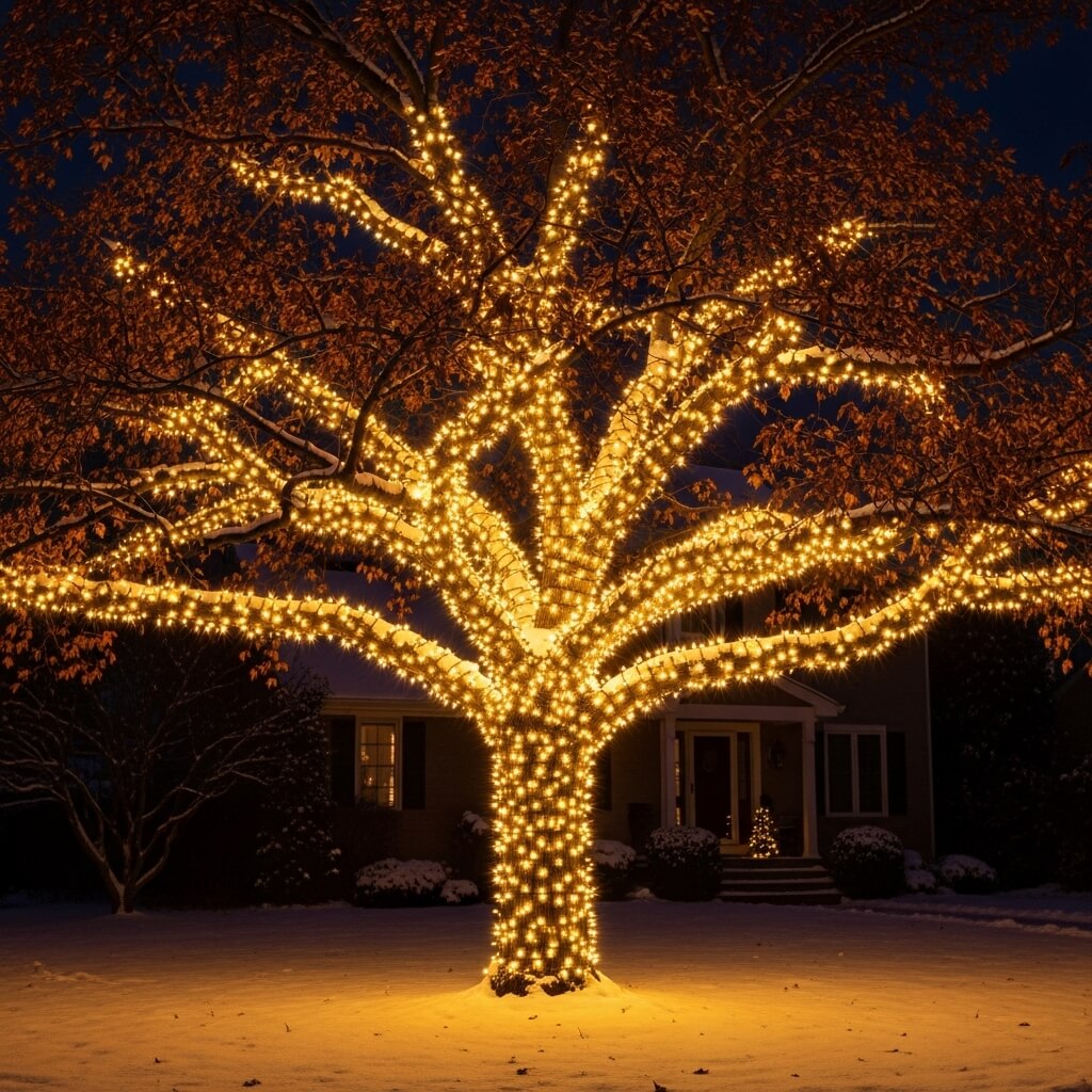You have that one tree in your front yard, right? Don’t just ignore it! Grab a few sets of globe string lights or a net light and wrap the trunk and lower branches. It turns a simple tree into a magnificent, glowing beacon that anchors your entire yard.