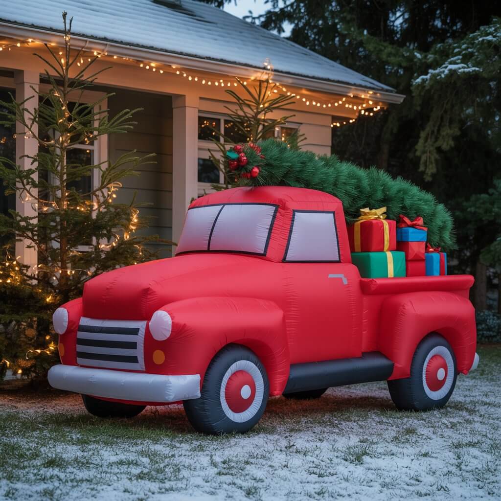 Think a classic vintage pickup truck filled with presents, a beautiful peacock, or a sleek Santa sleigh. It’s a massive statement piece that takes about five minutes to set up.