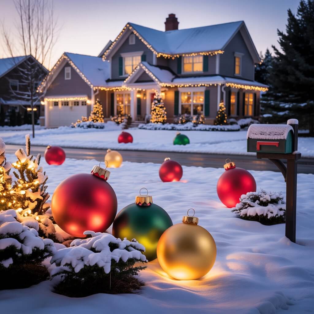 They add a playful, whimsical touch that feels both modern and festive. IMO, a cluster of red, gold, and green ones looks like a fun holiday party spilled into the yard.