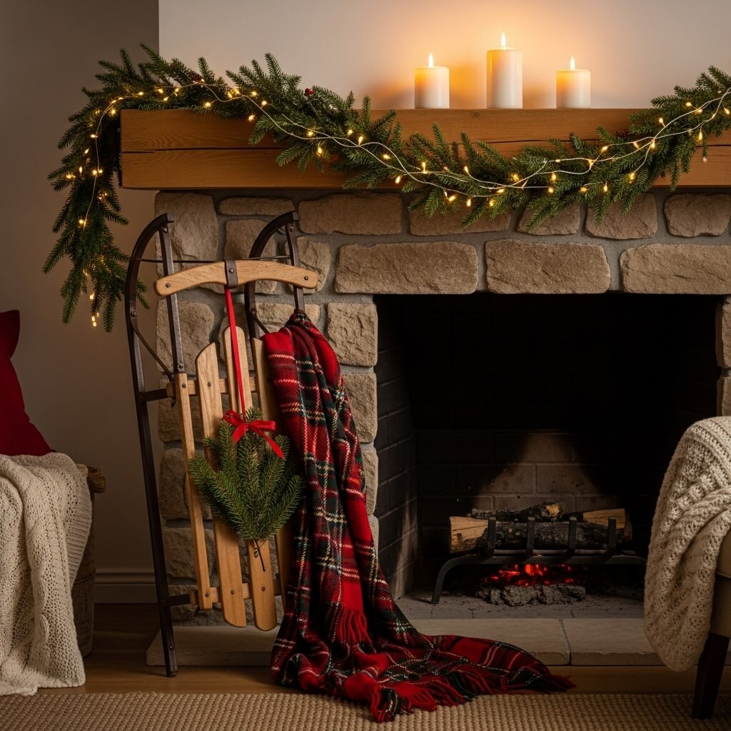 Lean into a classic, nostalgic winter theme by propping a vintage-style wooden sled or a pair of old skis against your fireplace. Drape it with a simple greenery swag or a cozy blanket. It’s a single, powerful piece that does all the heavy lifting for you.