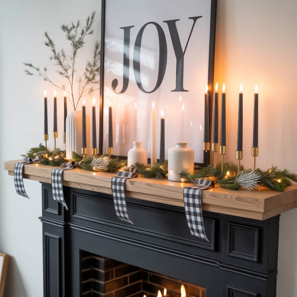 Step away from the traditional red and green for a moment. A monochrome scheme using black, white, and wood tones is strikingly modern. Use black taper candles, a black-and-white plaid ribbon, and typography art. It’s edgy, fresh, and totally unforgettable.