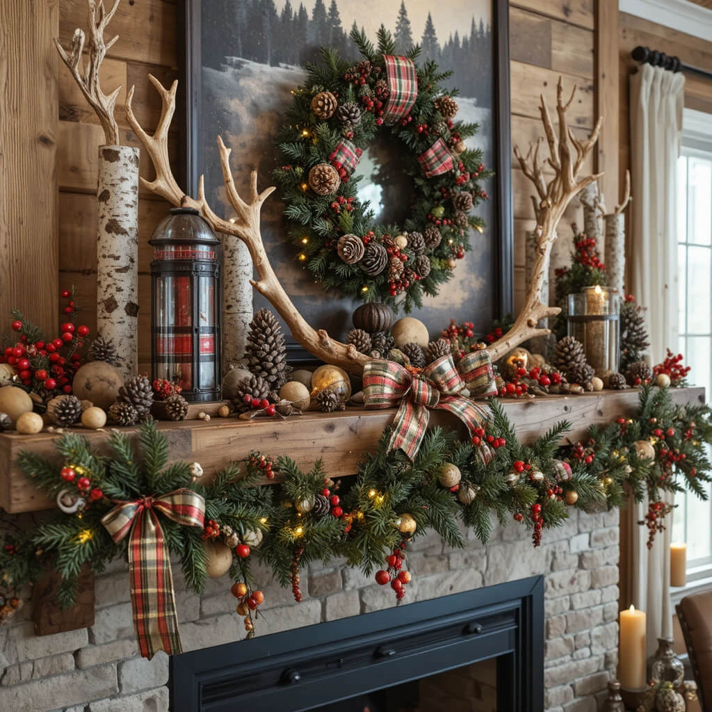 Bring the enchanting feeling of a winter forest indoors. Think pinecones, birch logs, antler sheds (faux, of course!), and plaid ribbons. Use a wooden bead garland for texture. The goal is to create a display that feels collected and natural, like you gathered it all on a peaceful winter walk.