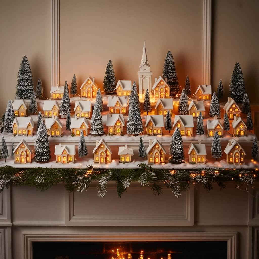 Bring a little bit of storybook charm to your hearth with a miniature Christmas village. Set up a few houses, a tiny church, and some little trees along your mantel. It creates a delightful scene that draws you in and sparks the imagination.